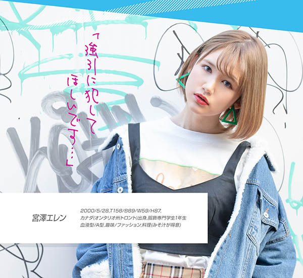 她叫宫泽エレン(宫泽爱伦),是加拿大和日本的混血,平常是个很害羞爱笑的女孩,但其实她非常喜欢那档子事,最想要的男人都用很色的眼光注视著她⋯