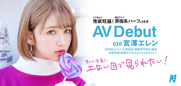 如果SOD不唬烂,那宫泽エレン(宫泽爱伦)天生就是块当AV女优的料,而且不只有著混血儿的五官,这位新人还有著白晰的肌肤、E罩杯的美乳以及让人流口水的米分纟工女乃豆页,各位看倌你评评理,这样一个19岁的女孩去拍A片,我们能不用小弟弟去支持吗?